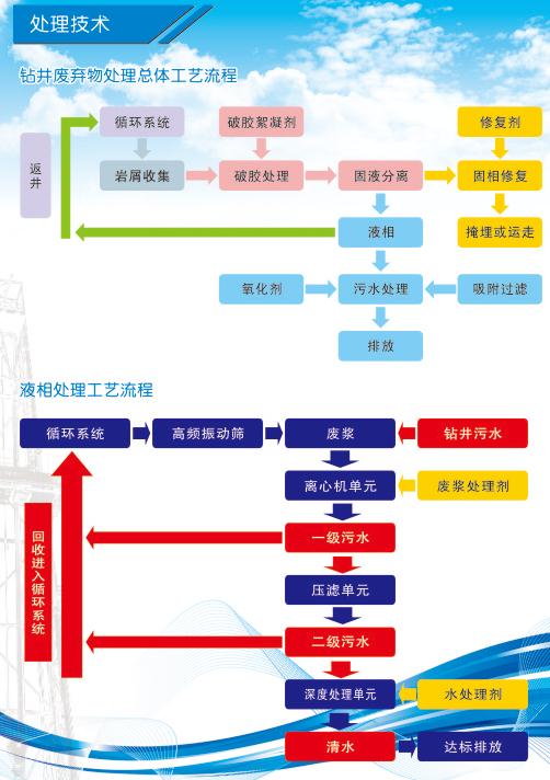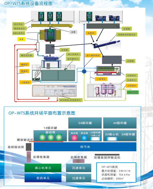 system brief introduction The drilling waste mud disposal system can be used to process solid waste and waste water from the solid control system of drilling process, waste not drop on the ground, reach discharge standards after disposed. The system consists of by HGD (drying shaker) unit, buffer tank unit, centrifuge unit, medicament preparation + laboratory unit, filter unit and filter + reverse osmosis unit and other major equipment, screw conveyor, double helix mixing conveyor and other auxiliary equipment. In addition to user is required to equipped with own cuttings box, transport vehicles, generator, excavator etc. Maximum processing capacity is 20 cubic meters / hour, the total installed capacity of 156.6kw. The system design utilizes chemical treatment to enhance the treatment effect of solid-liquid separation equipment. After centrifugal separation, filter, multi medium filtration, reverse osmosis process, make the harmful part in the mud emission along with the solid phase, liquid phase could be used for the preparation of slurry, discharge or irrigation, solid part reburied after solidification treatment.